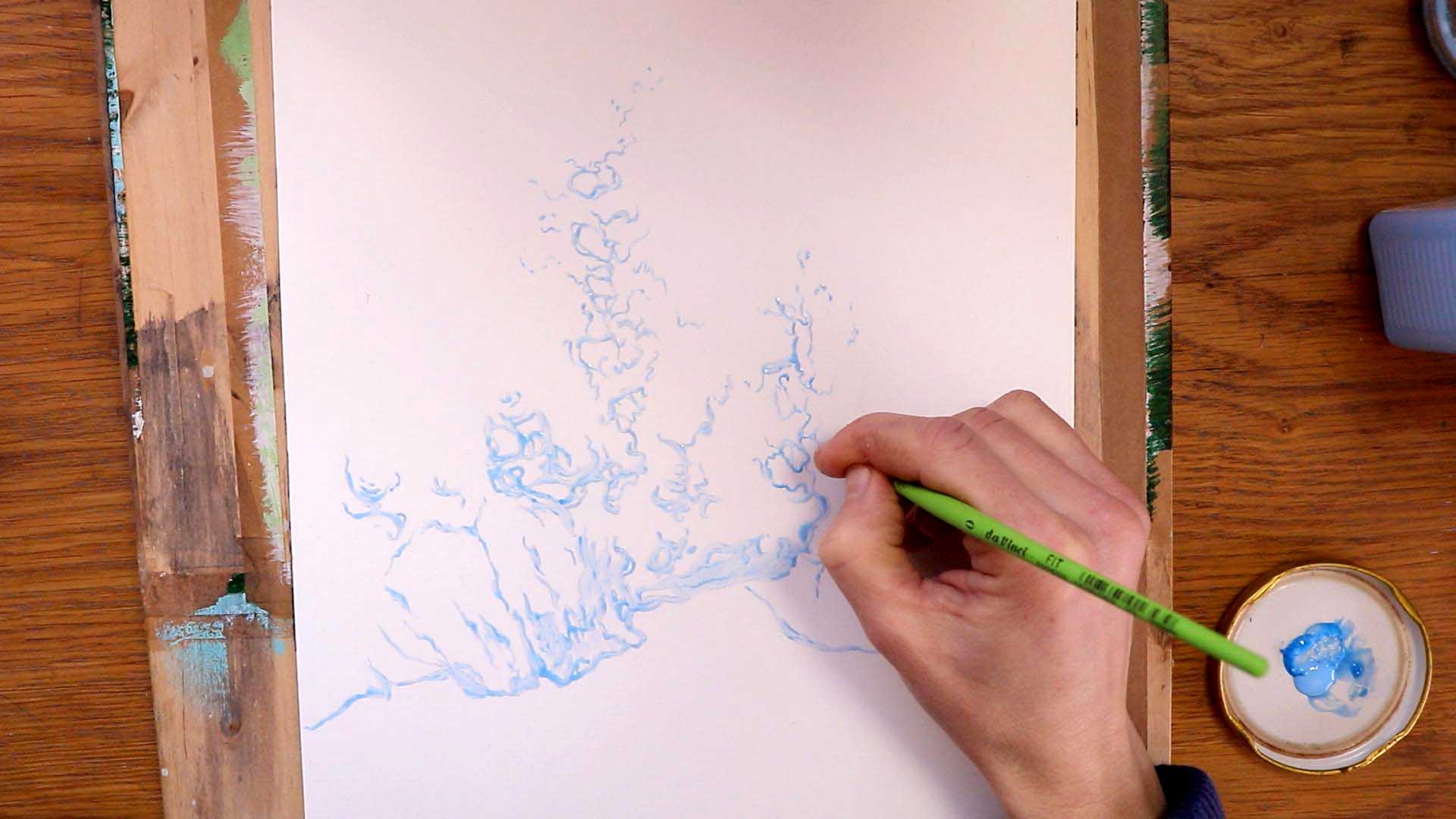 Když se například podíváte na akvarelovou malbu moře, tak si jistě dokážete představit, že by nebylo možné pracovat bez kapaliny. Sama se u tohoto případu přikláním ke štětci, protože krásně využijete jak tenké čáry, tak i silnou linii, které získáte velice jednoduše sílou přítlaku.